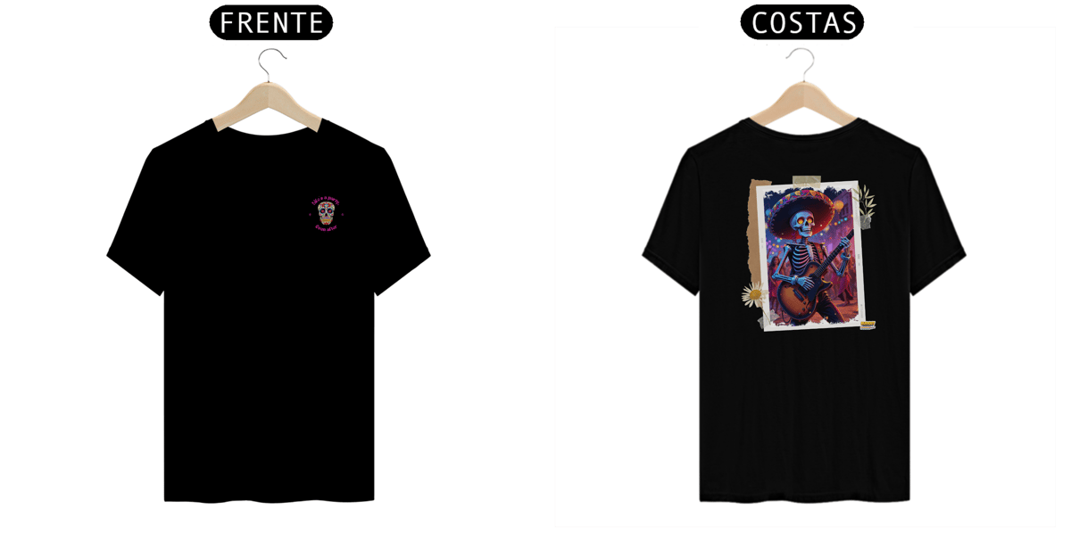 Cores do produto: Como cada tela de computador ou celular tem seu próprio jeito de mostrar cores, então a cor da sua camiseta e da estampa pode ser um pouco diferente do que você viu online.