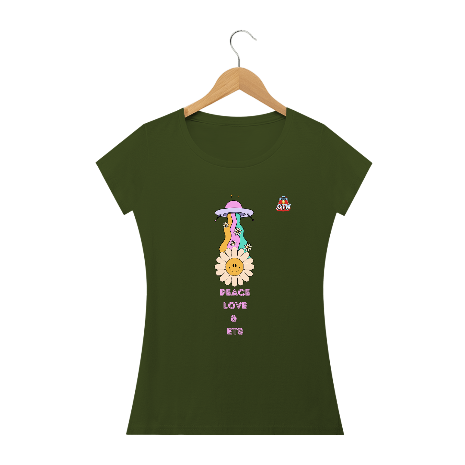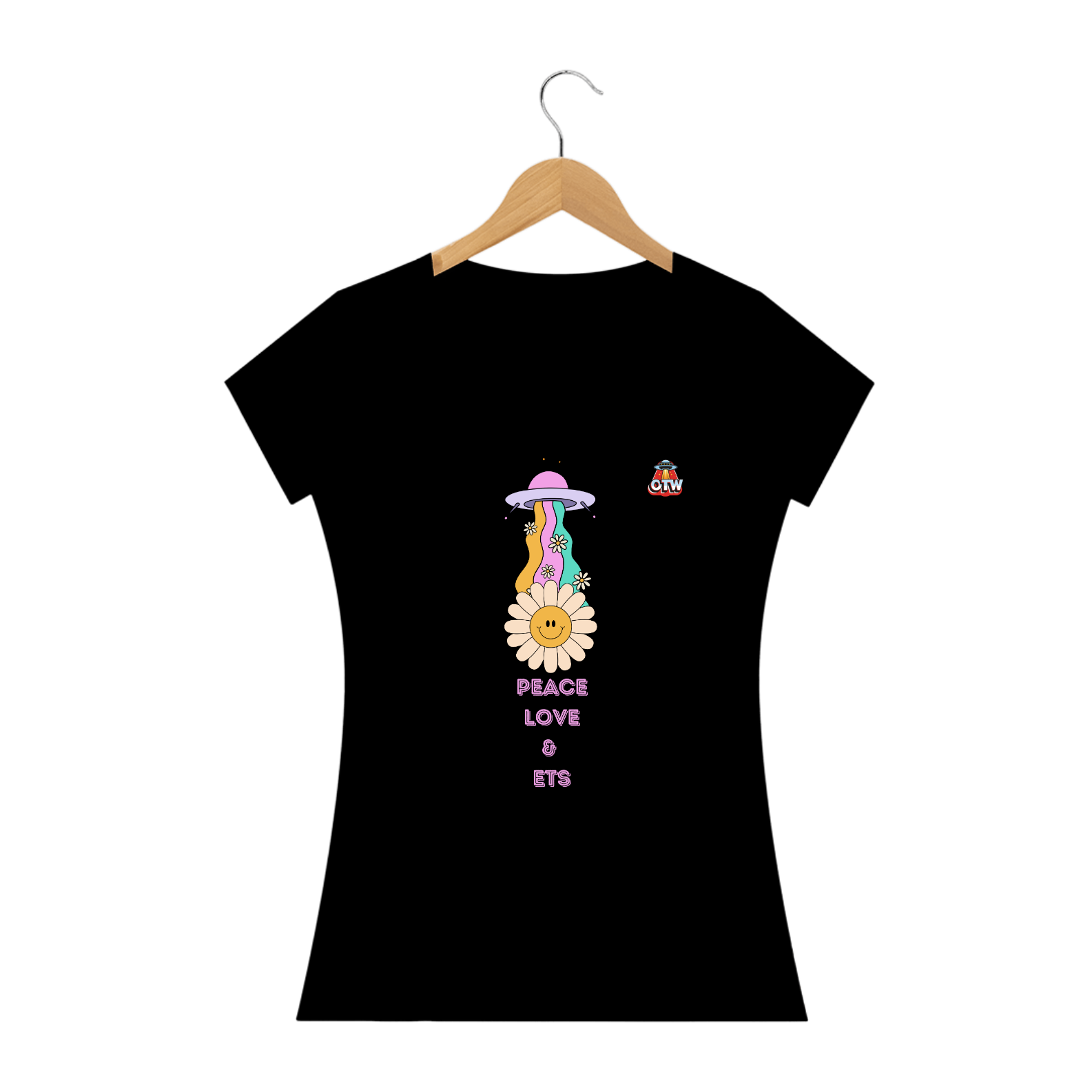 Junte-se à nossa missão de espalhar paz, amor e um pouco de excitação interplanetária com a camiseta "Peace, Love e Ets"! da OTW. Vá em frente, vista-se, e deixe o universo saber que você está pronto para tudo o que ele tem de melhor!